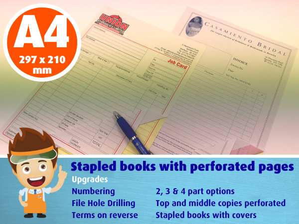 A4 size – Carbonless Forms – Stapled books with perforated pages