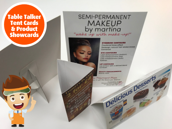 - Gloss or Matt Laminated finish to Table Talker Tent Cards